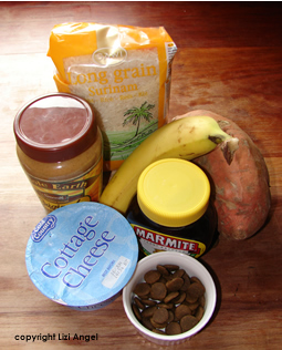 Ingredients: Pureed pumpkin, tahini paste (or peanut