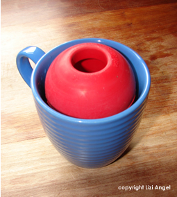 - Next, place the Kong, small end down, into a mug.