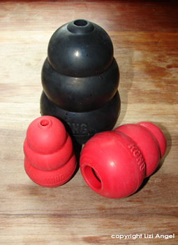 cone designed to be filled with food. Kongs come in different sizes,